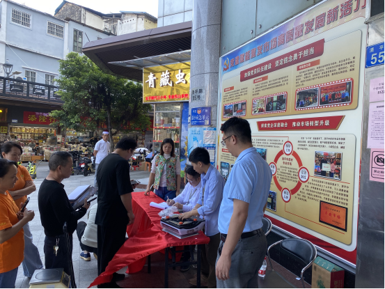 活动现场,计量检测人员对市场及周边商户使用的电子计量秤进行集中检定,商户们按序将计量秤送检。此次检定重点检查秤具的准确性、铅封完好情况及计量标识是否规范。检测人员逐一开展校准、核对、贴标等工作,并现场解答商户有关秤具使用与检定周期的问题,整个活动过程井然有序。